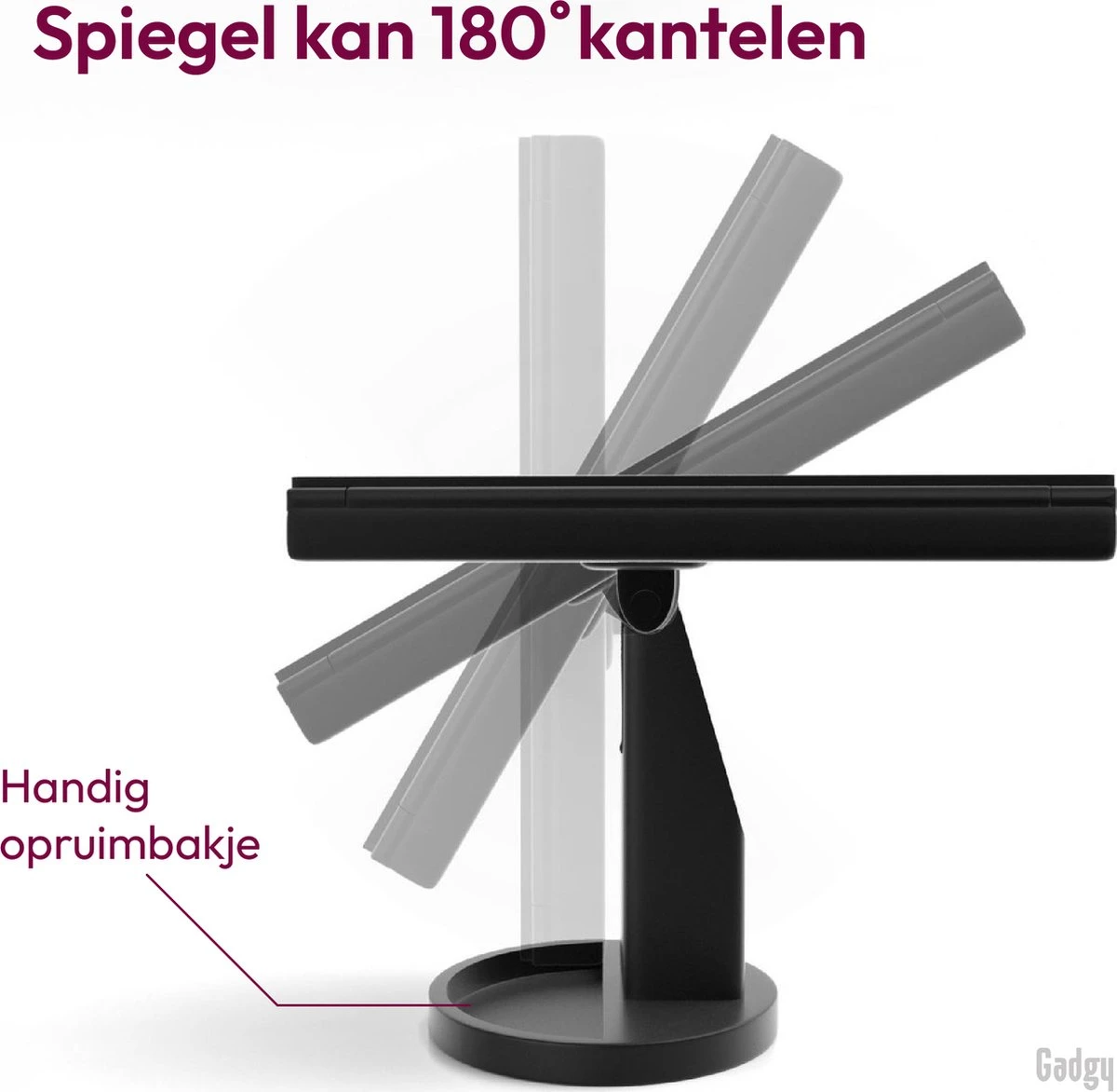 180° draaibaar – De spiegel is 180° draaibaar, waardoor je de spiegel volledig kunt draaien naar jouw wens. Hierdoor kun je vanuit elke hoek perfect je make-up aanbrengen.