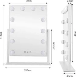 Bright Beauty Vanity Make Up Spiegel Met Verlichting – Wit – Dimbaar Met Drie Lichtstanden
