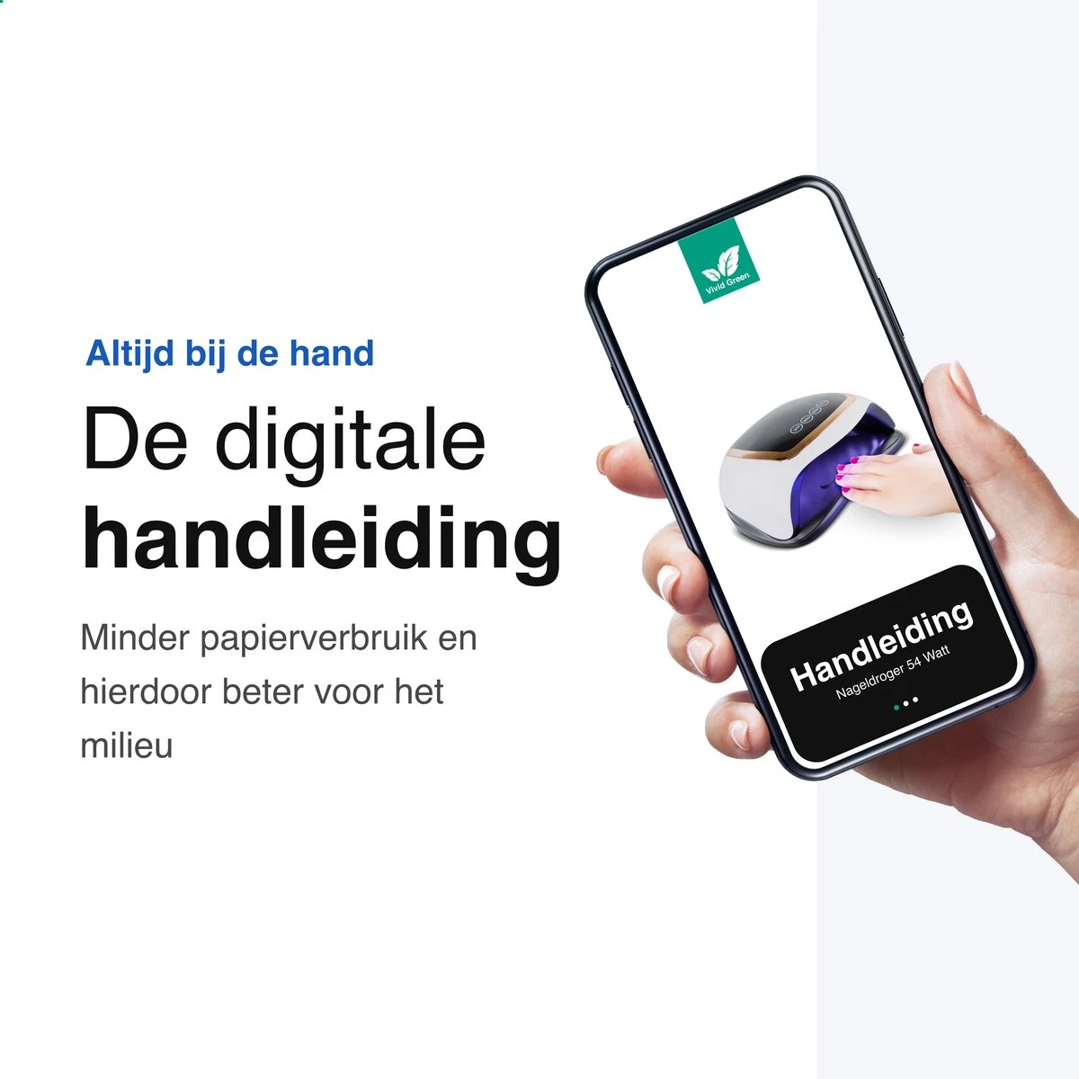 Je herkent onze producten door hun 100% afbreekbare luchtvrije bruine verpakkingsdozen, materiaal besparende digitale handleidingen & een enkele iconische Vivid Green® sealsticker. Een nieuwe milieuvriendelijke standaard binnen e-commerce.